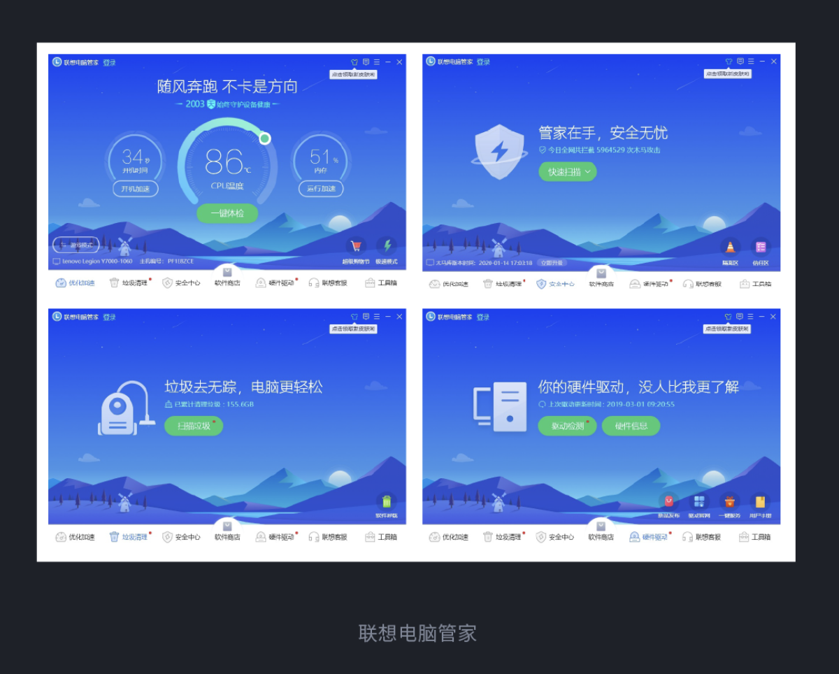 一致性設(shè)計(jì)能降低用戶學(xué)習(xí)成本、提升研發(fā)效率。布局一致性要保持統(tǒng)一結(jié)構(gòu),減少用戶對新結(jié)構(gòu)的思考負(fù)擔(dān)。色彩一致性要求主色調(diào)統(tǒng)一傳遞品牌印象,功能性色彩形成固定規(guī)則。操作一致性是指同類功能操作邏輯統(tǒng)一,降低學(xué)習(xí)成本。反饋一致性要讓系統(tǒng)對同類操作的反饋方式統(tǒng)一,讓用戶與系統(tǒng) “溝通順暢”。文字一致性要求文字大小、顏色、風(fēng)格統(tǒng)一,避免用戶因 “格式混亂” 產(chǎn)生誤解。聲音一致性要使操作提示音固定,強(qiáng)化用戶對操作結(jié)果的預(yù)判。聯(lián)想電腦管家的優(yōu)化加速、垃圾清理等模塊,在布局、文字、反饋方式上保持一致,既提升了用戶體驗(yàn),也降低了研發(fā)成本。