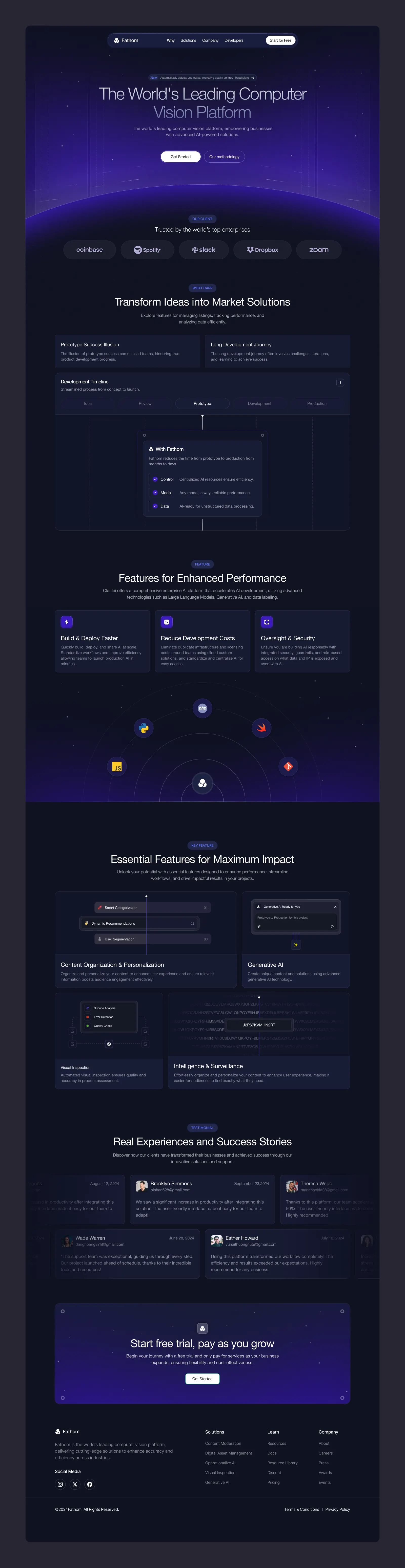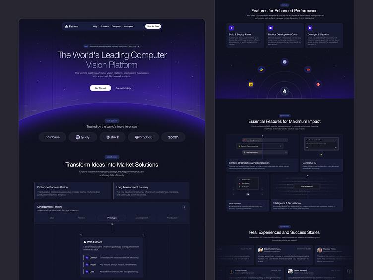 頂部:品牌定位(“The World's Leading Computer Vision Platform”)+ 快速行動按鈕(CTA)。