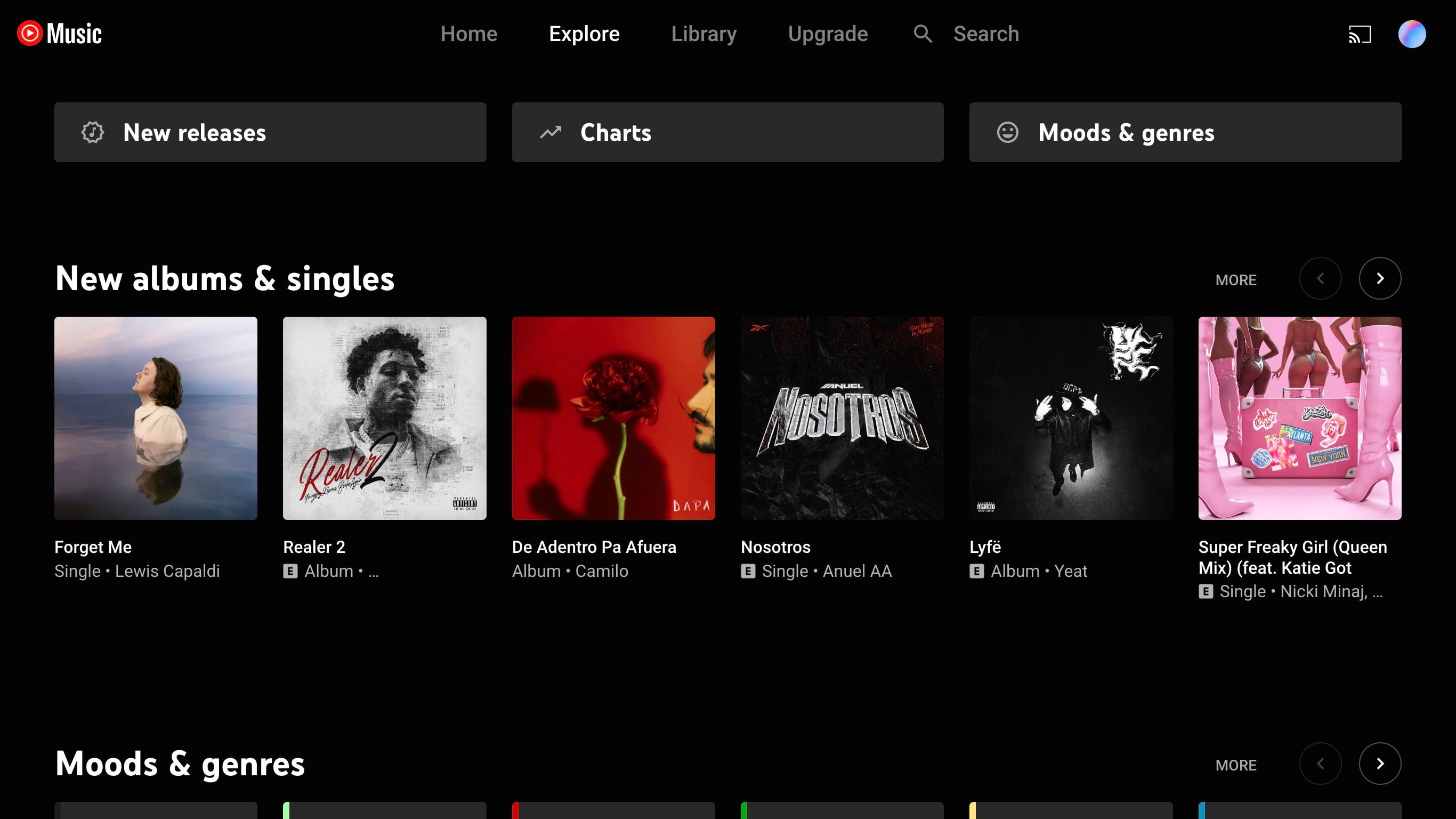 層次感:大標題(如“New albums & singles”)→ 模塊標題 → 內(nèi)容卡片 → 二級信息。