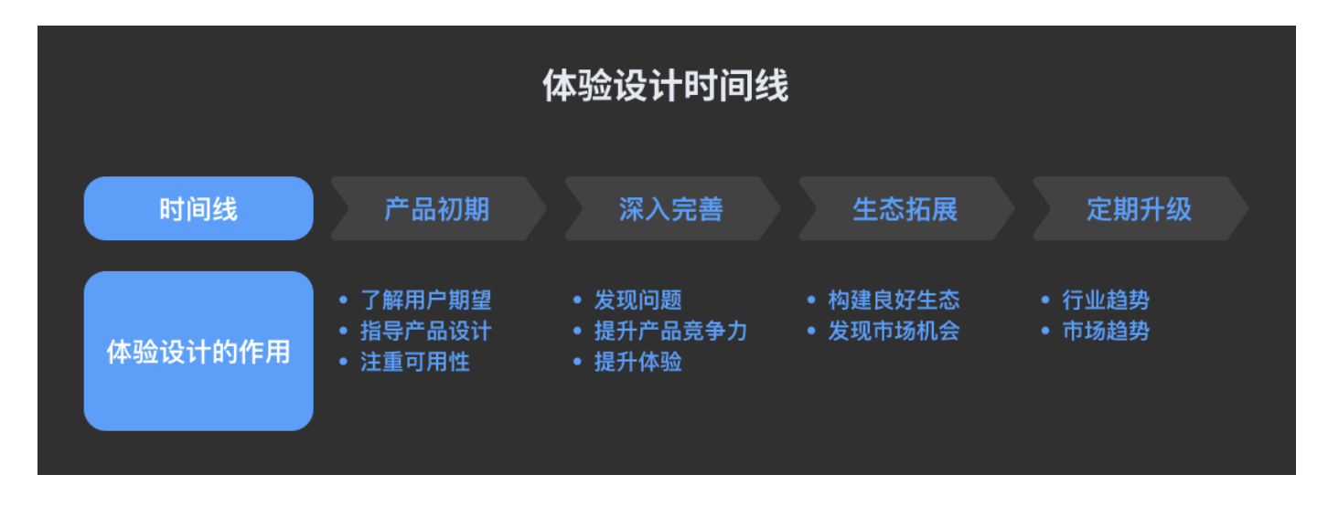 很多人問 “什么時(shí)候開始做體驗(yàn)設(shè)計(jì)?” 答案是:從產(chǎn)品誕生到迭代的每一個(gè)階段,都需要體驗(yàn)設(shè)計(jì)的介入。