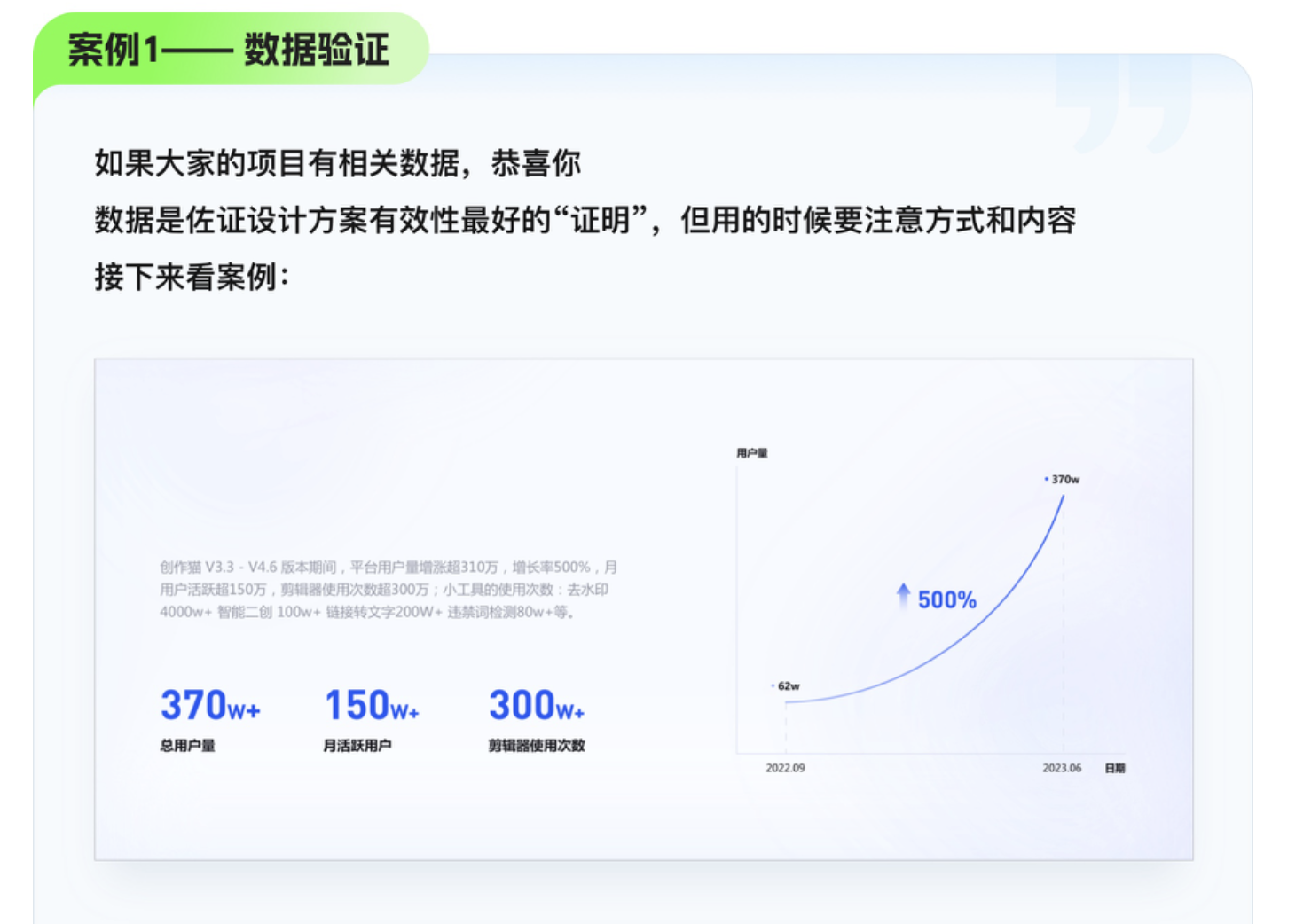 - 結(jié)果呈現(xiàn):數(shù)據(jù)驗(yàn)證(強(qiáng)關(guān)聯(lián)指標(biāo))或側(cè)面反饋(具體認(rèn)可場(chǎng)景);