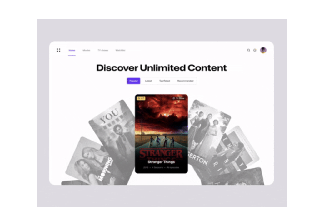 - 定義:借鑒現(xiàn)實中撲克牌的翻頁、堆疊邏輯,內(nèi)容卡片以層疊或并列形式呈現(xiàn),切換時帶有滑動、翻轉(zhuǎn)等物理動效,讓用戶直觀感知 “內(nèi)容切換” 的動作。