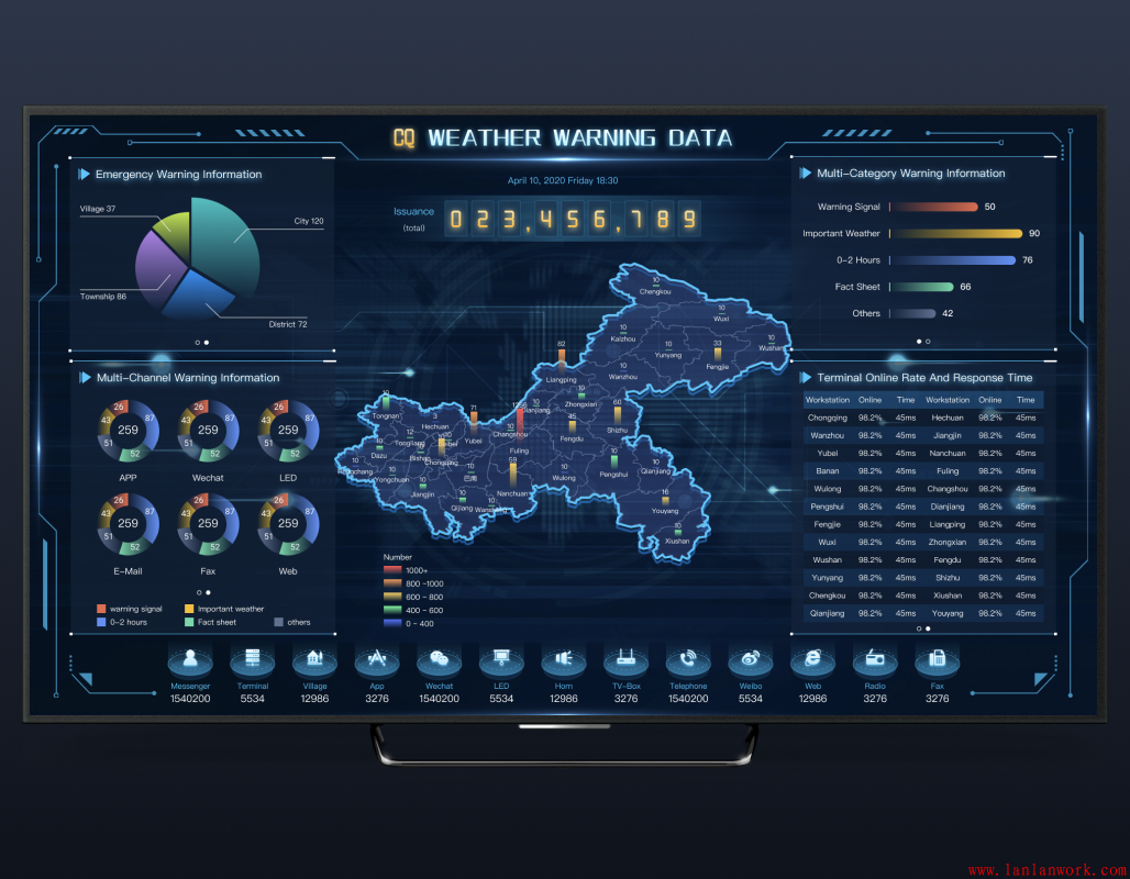 大屏可視化界面設(shè)計(jì)可謂是當(dāng)今行業(yè)、企業(yè)發(fā)展的見(jiàn)證,生動(dòng)直觀地再現(xiàn)了行業(yè)、企業(yè)的全貌。不僅作為展示,方便了解、監(jiān)督;同時(shí)可以作為一個(gè)有效的管理平臺(tái),帶來(lái)效益。大屏界面面向范圍廣,協(xié)同性好,易于被采用。下面幾個(gè)大屏的界面設(shè)計(jì),沉穩(wěn)的背景上,加上亮色作為點(diǎn)綴和強(qiáng)調(diào)。既不失其風(fēng)格,又富有靈動(dòng)性。