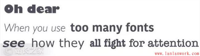 當(dāng)然,你還可以在設(shè)計(jì)中使用兩種字體(一種用于標(biāo)題,一種用于其他文本,比如段落,標(biāo)題等等)。我們很少在設(shè)計(jì)中看到兩種以上的字體,但出現(xiàn)這種情況時(shí),是有一定原因的。