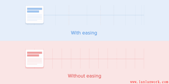 緩入緩出動(dòng)畫常被用在界面中對象從一個(gè)位置移動(dòng)到另一個(gè)位置時(shí)。在這種情況下,動(dòng)畫的目的是為了不讓人有過多不必要的關(guān)注。