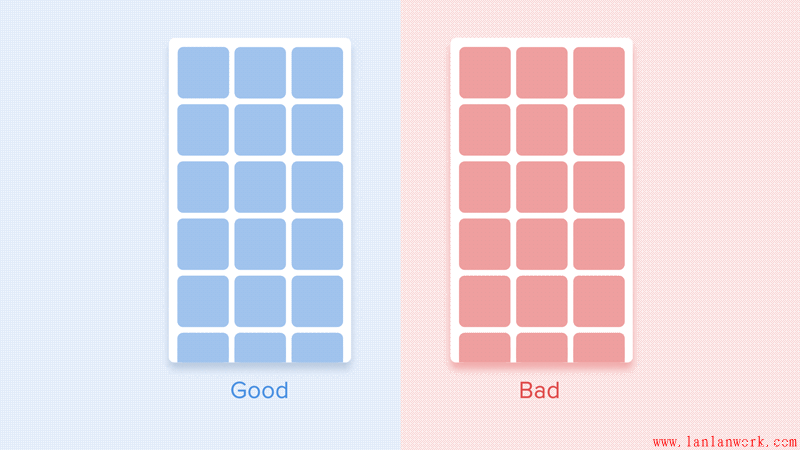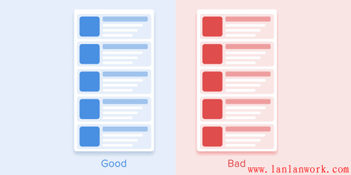 列表項(xiàng)的出現(xiàn)應(yīng)該只允許有一個(gè)短暫的延遲。每一個(gè)新列表項(xiàng)的出現(xiàn)間隔應(yīng)該在20-25ms之間。元素出現(xiàn)太慢的話,會讓用戶感到很不爽。