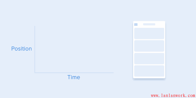 物體沿曲線移動(dòng)的路徑必須與滾動(dòng)界面的方向重合。例如,在下面的例子中,我們可以上下滾動(dòng)界面,相應(yīng)地,卡片以垂直的方式展開更合適——先向右,然后向下。